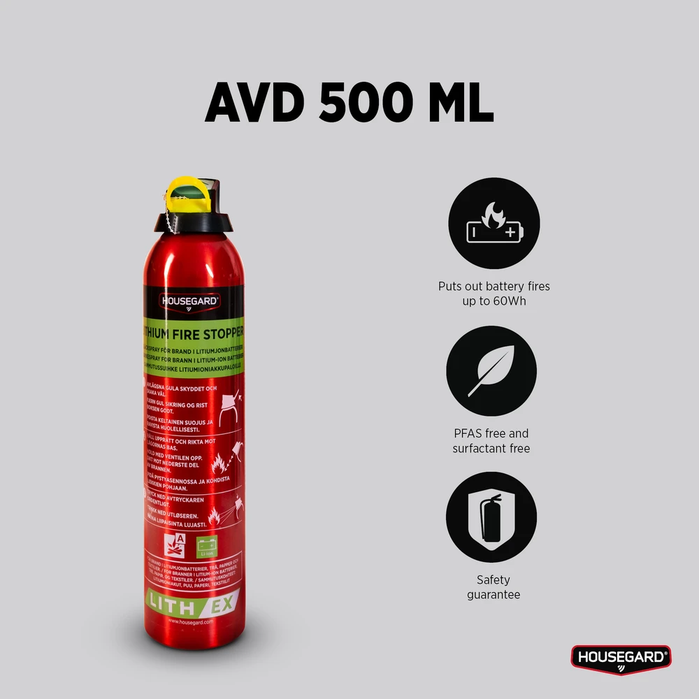Lith-EX on sammutussuihke, joka on kehitetty pienten litiumioniakkujen paloihin, kuten matkapuhelimissa, tietokoneissa ja muussa pienelektroniikassa. Se on tarkoitettu pidettäväksi helposti saatavilla tiloissa, joissa elektroniikkaa ladataan tai säilytetään, ja se sisältää AVD-sammutusaineen, joka auttaa rajoittamaan palon etenemistä akussa.