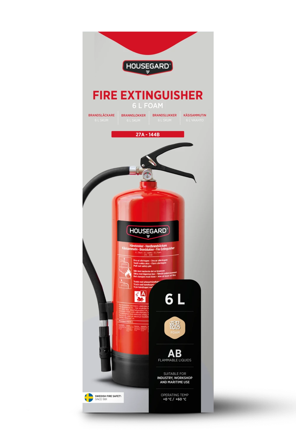 Tehokas skumitulistin – täysin ilman PFAS-yhdisteitäHousegardin 6 L skumitulistin valmistetaan korkealaatuisesti ja on suunniteltu sammuttamaan tehokkaasti neste- ja orgaanisia paloja (luokat A ja B). Soveltuu erinomaisesti teollisuuteen, korjaamoihin, laivoihin ja konetiloihin.