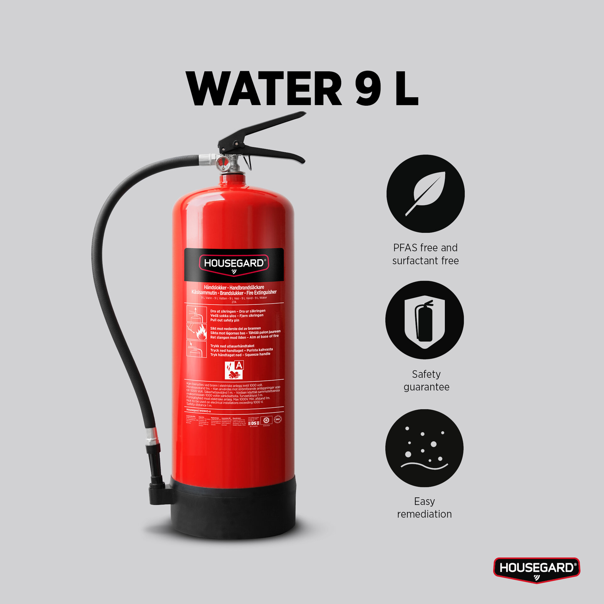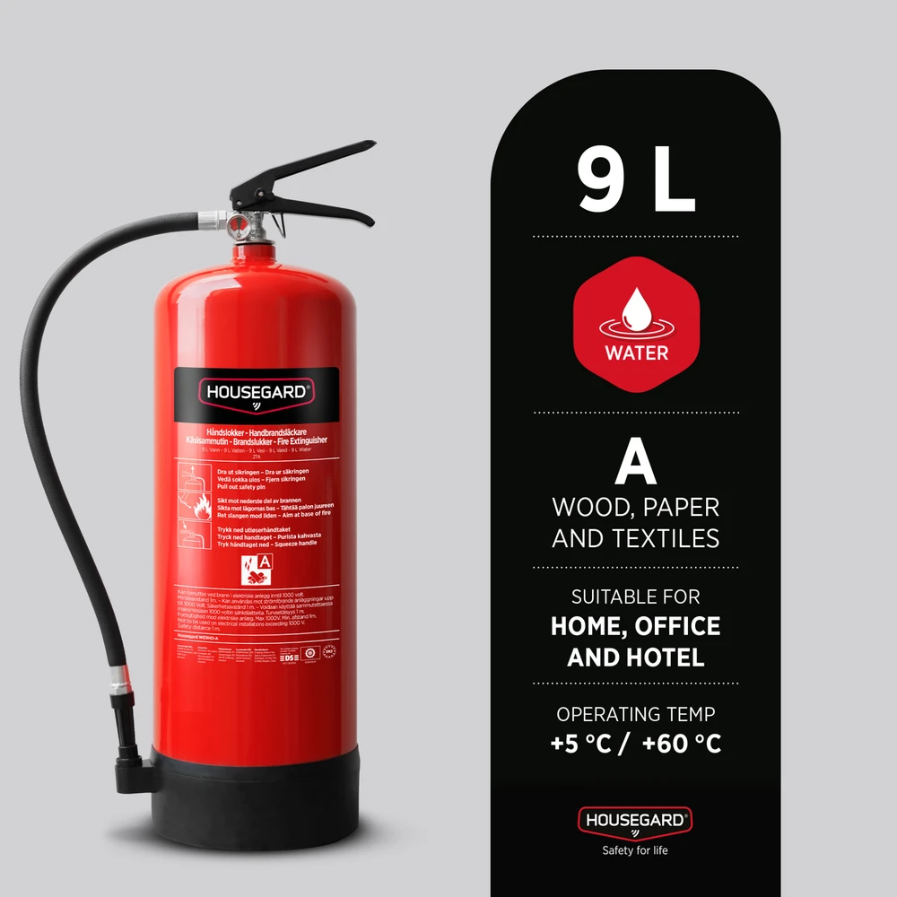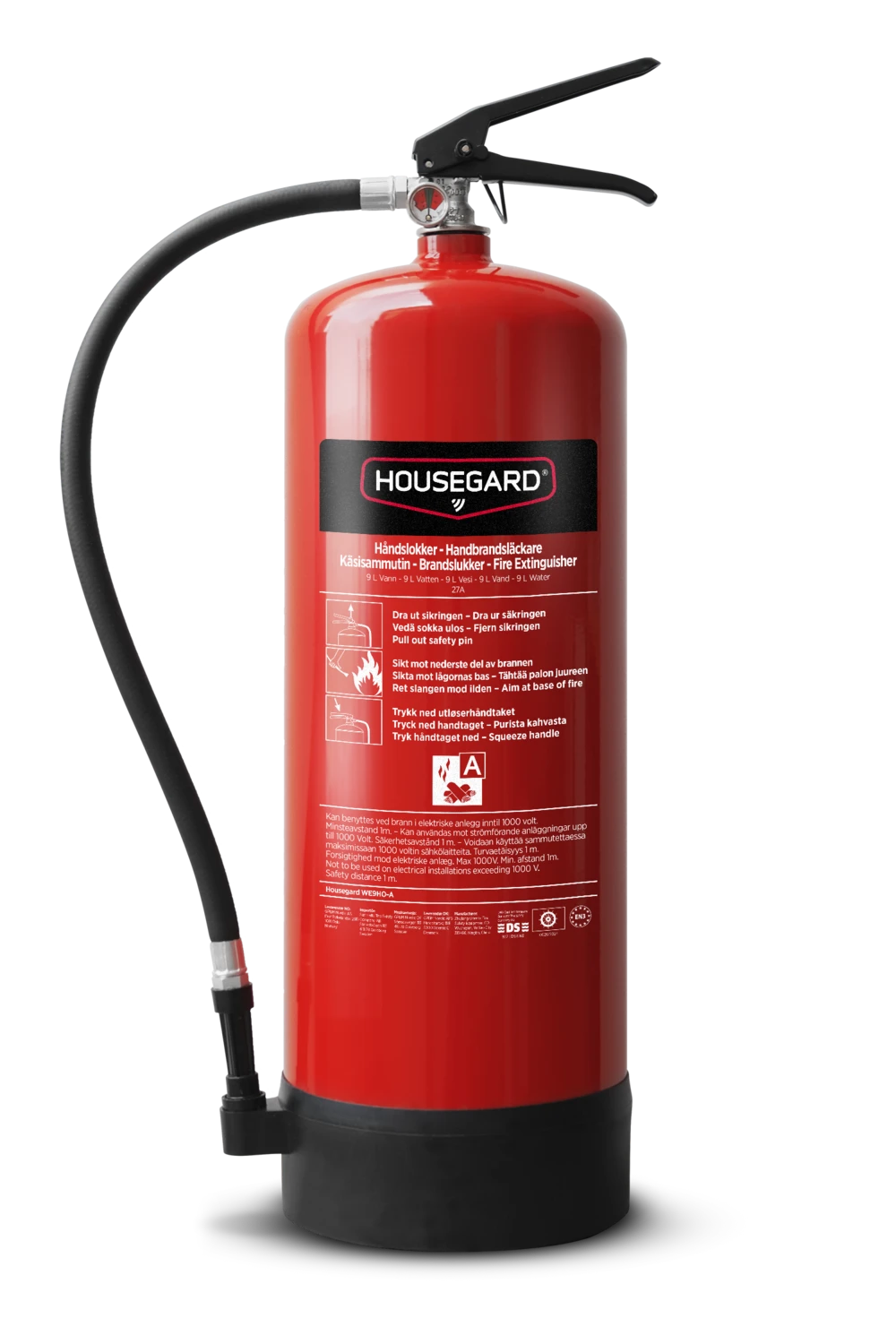 Housegard vesisammutin 9 L on tehokas, puhdas ja ympäristöystävällinen sammutinratkaisu. Se on paras valinta kohteisiin, joissa ympäristöystävällisyys ja siisti sammutus ovat erityisen tärkeitä.