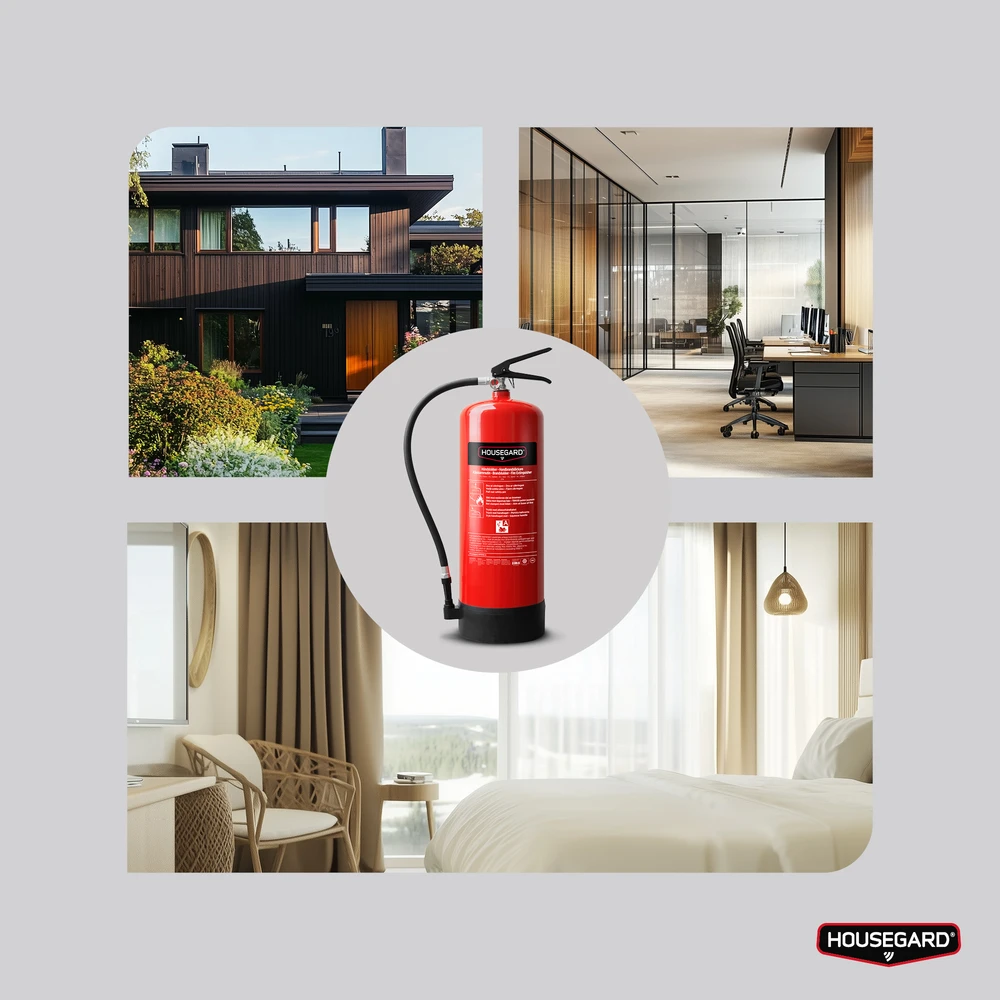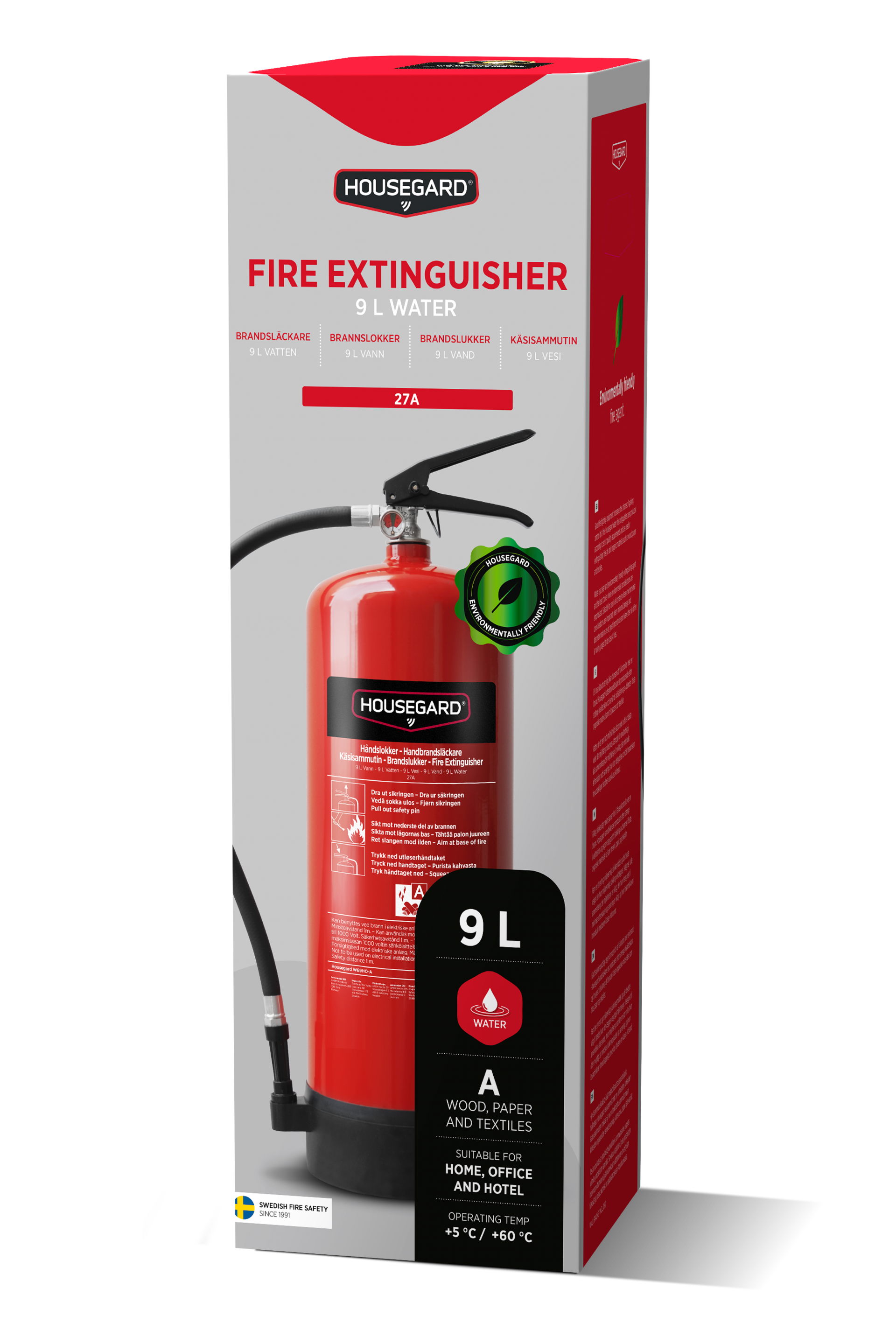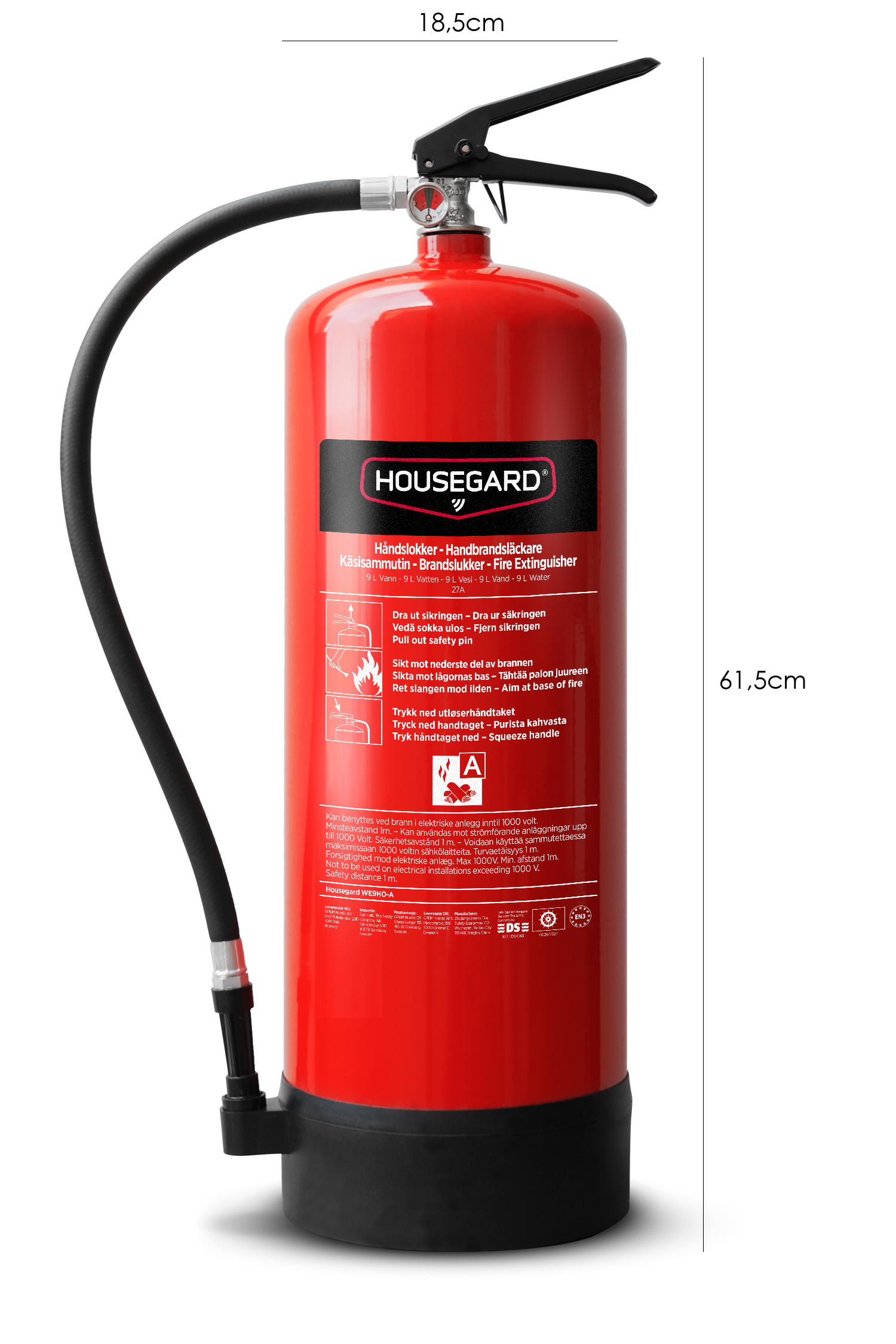 Housegard vesisammutin 9 L on tehokas, puhdas ja ympäristöystävällinen sammutinratkaisu. Se on paras valinta kohteisiin, joissa ympäristöystävällisyys ja siisti sammutus ovat erityisen tärkeitä.