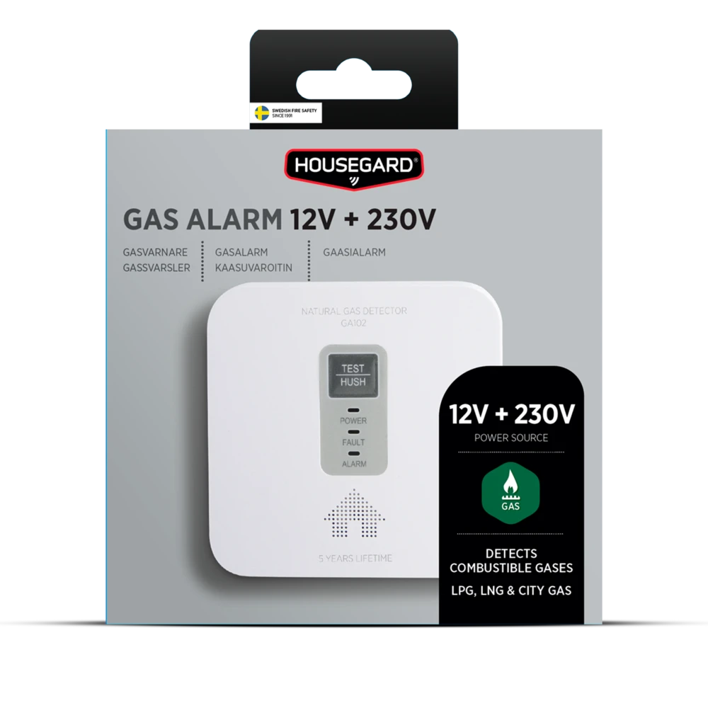Tämä kaasuhälytin on ihanteellinen kotiin ja vapaa-ajan asuntoihin, kuten matkailuautoihin ja vaunuihin. Se hälyttää nopeasti palaville kaasuilla, kuten nestekaasu, maakaasu ja kaukolämpö. Hälytin voidaan liittää sekä 12V että 230V jännitteisiin virtalähteisiin mukana tulevalla adapterilla, mikä tekee asennuksesta joustavan. Varkaudenesto ja tamper-hälytys lisäävät turvallisuutta. Ulkoinen sireeni tai venttiili voidaan liittää relelähtöön. Hälyttimessä on myös helppokäyttöinen tauko- ja testitoiminto sekä selkeät LED-merkkivalot normaali-, vika- ja hälytystilalle. Hälyttimen käyttöikä on viisi vuotta, ja se on CE- sekä EN 50194-1:2009 -hyväksytty. Paras suoja saadaan asentamalla hälytin oikein kaasutyypin mukaan.