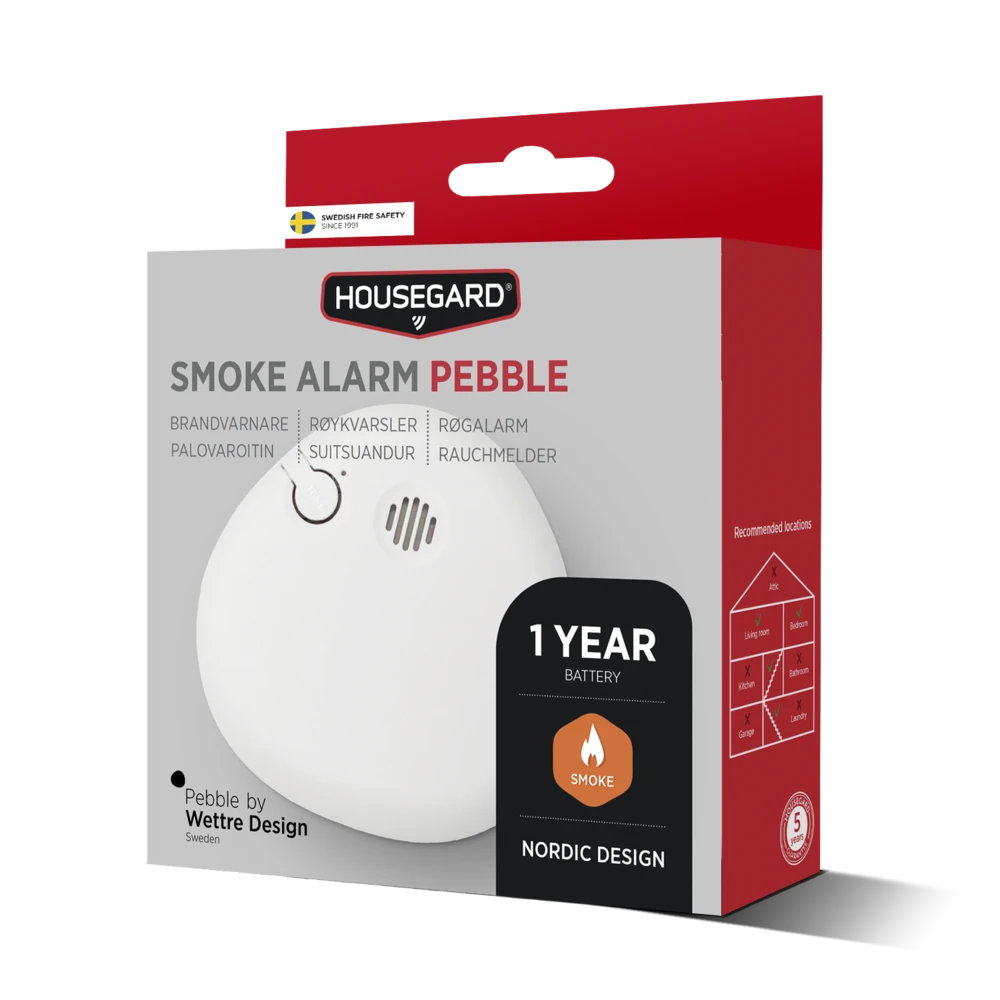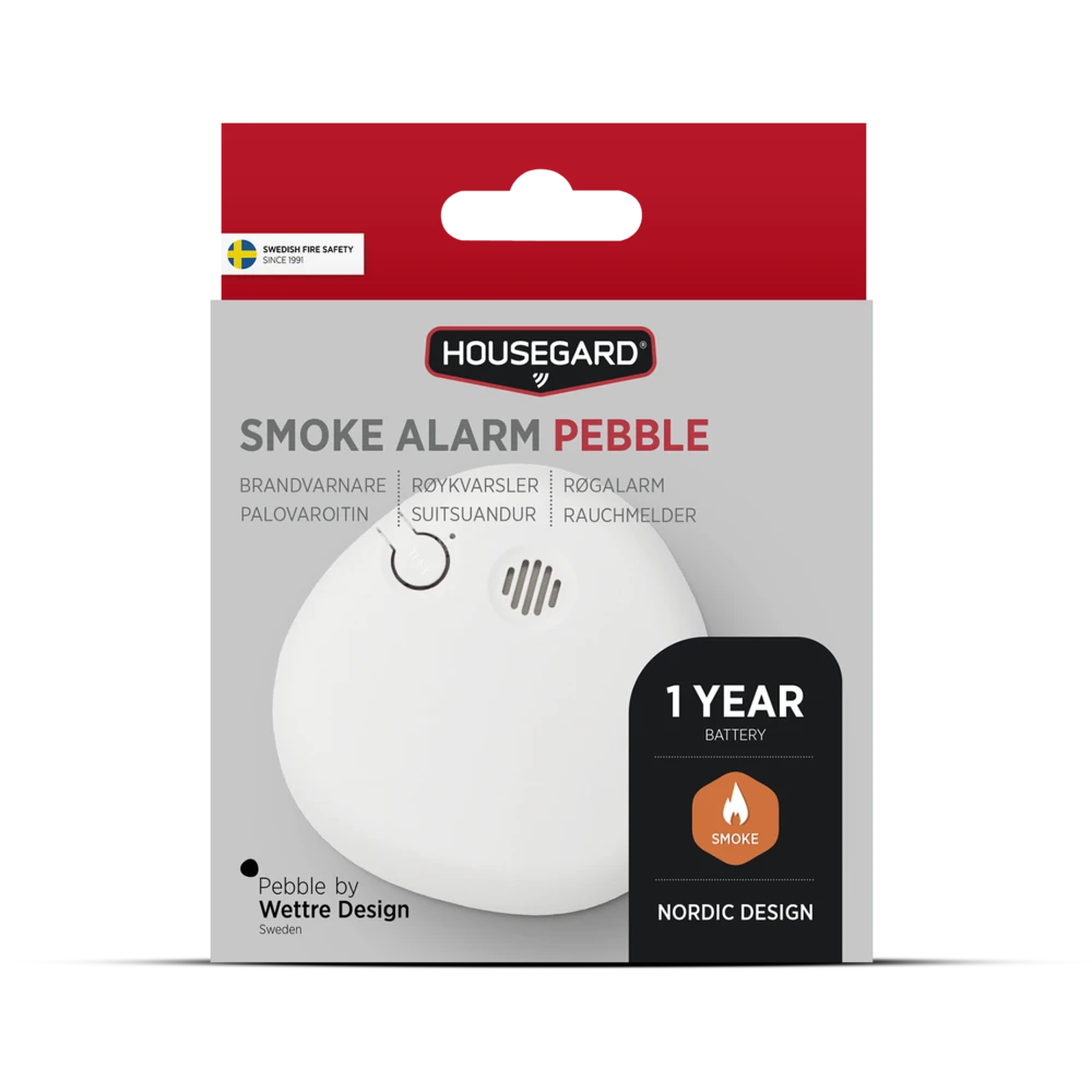 Pebble on tyylikäs palovaroitin, jonka on suunnitellut Lars Wettre luonnon pehmeistä muodoista inspiroituneena. Se sulautuu kotiin huomaamattomasti ja reagoi nopeasti savuun varoittaen selkeällä hälytyksellä silloin, kun sillä on eniten merkitystä.
