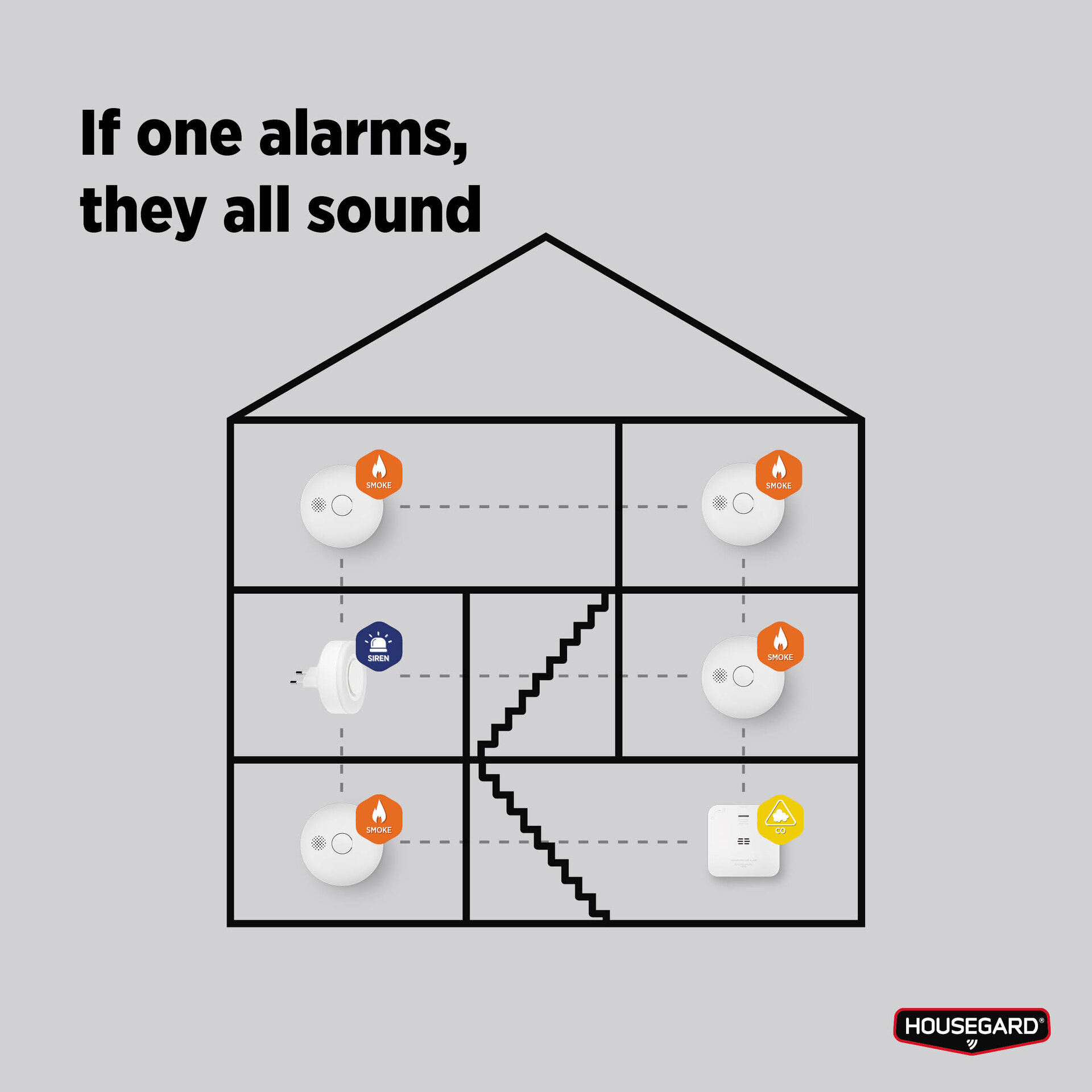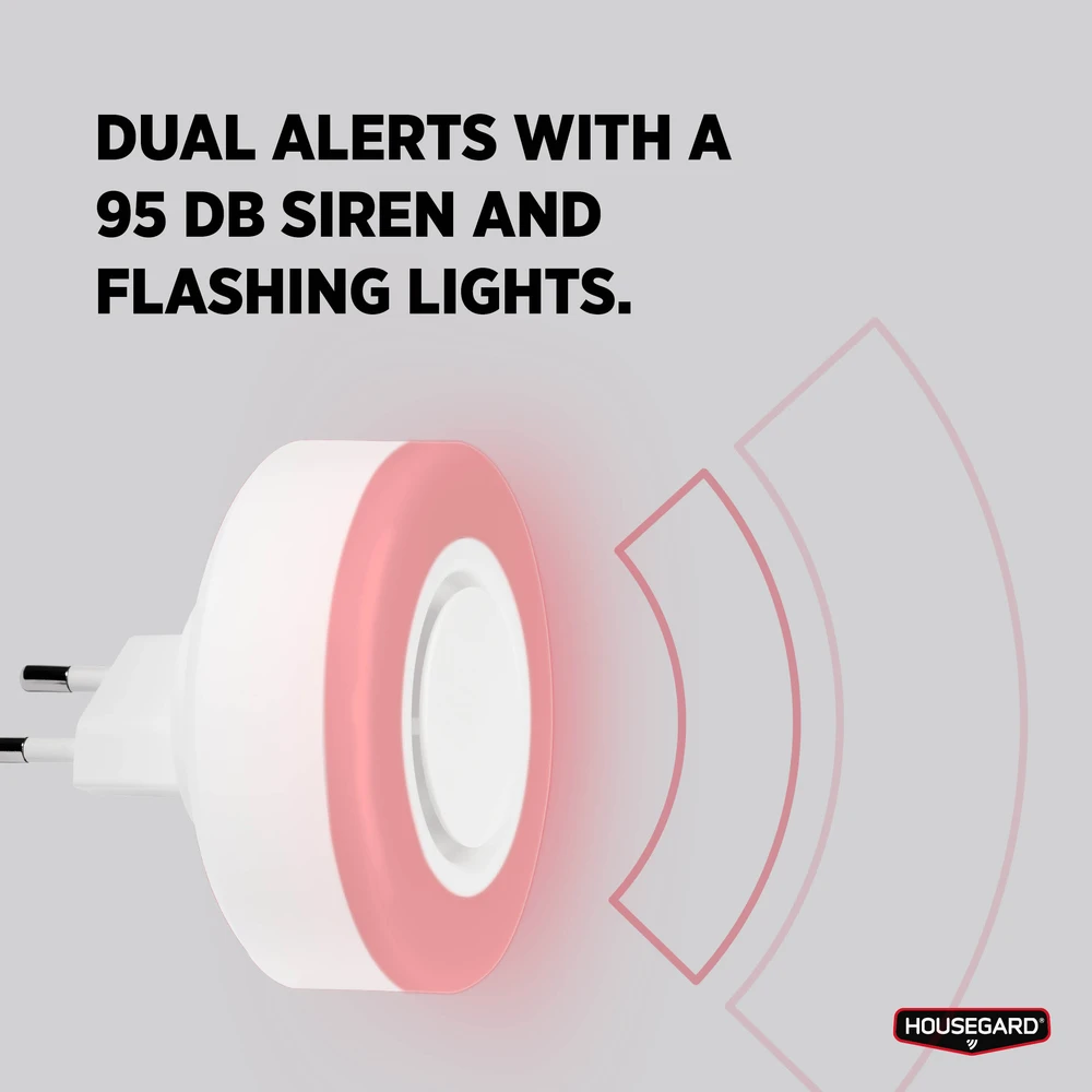 Tehokas langaton sireeni 95 dB äänellä ja vilkkuvalla valolla suojaa koko kotia. Helppo asennus 230 V pistorasiaan ja 4 tunnin akkuvarmennus sähkökatkon varalle. Yhdistä jopa 40 laitetta – hälytä koko perhe välittömästi.