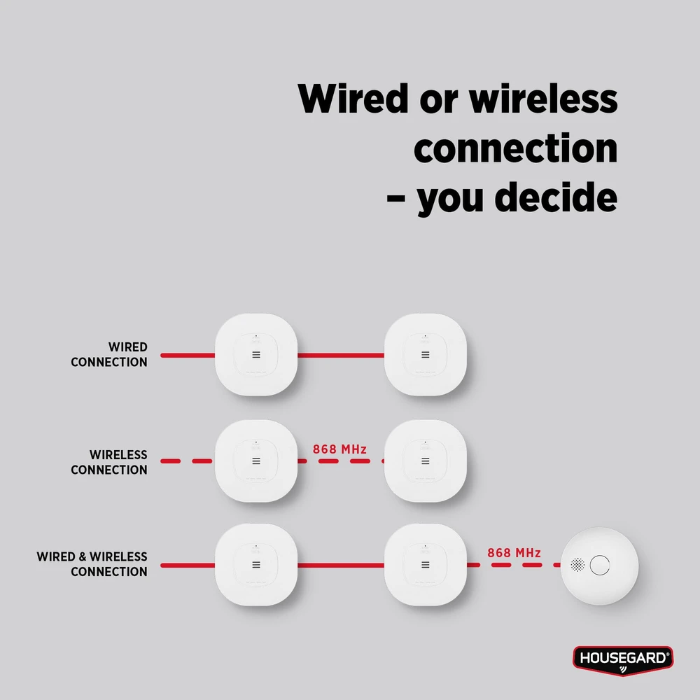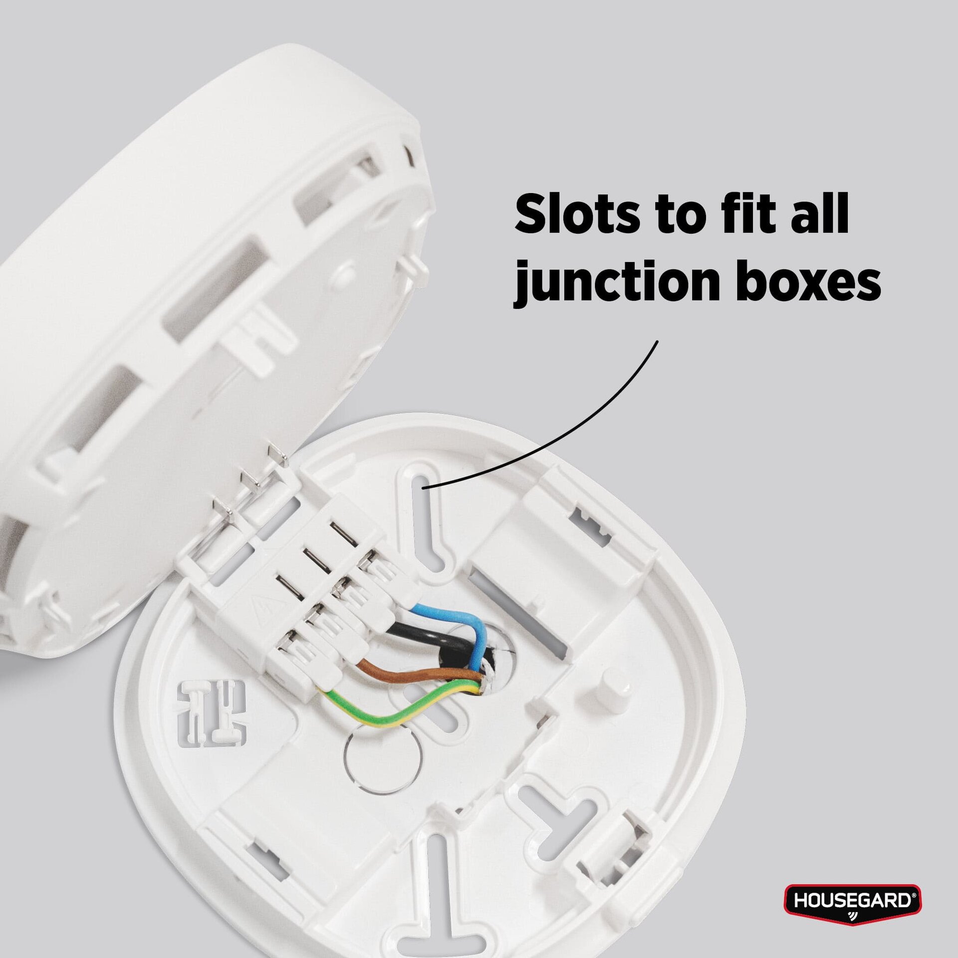 Asennuksen suorittaa sähköasentaja, ja se voidaan tehdä johtolähdön päälle, kattorasian avulla tai pinta-asennuksena. Varoitin voidaan liittää toisiin laitteisiin langattomasti tai johdotettuna – langattomasti jopa 40 yksikköä ja johdotettuna 20 – jolloin kaikki varoittimet hälyttävät samanaikaisesti.