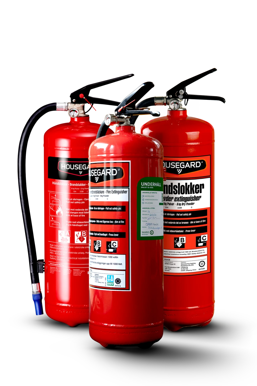 De tre släckarna på bilden visas endast för att illustrera att utseendet kan variera mellan modeller. Leveransen innehåller en (1) brandsläckare.