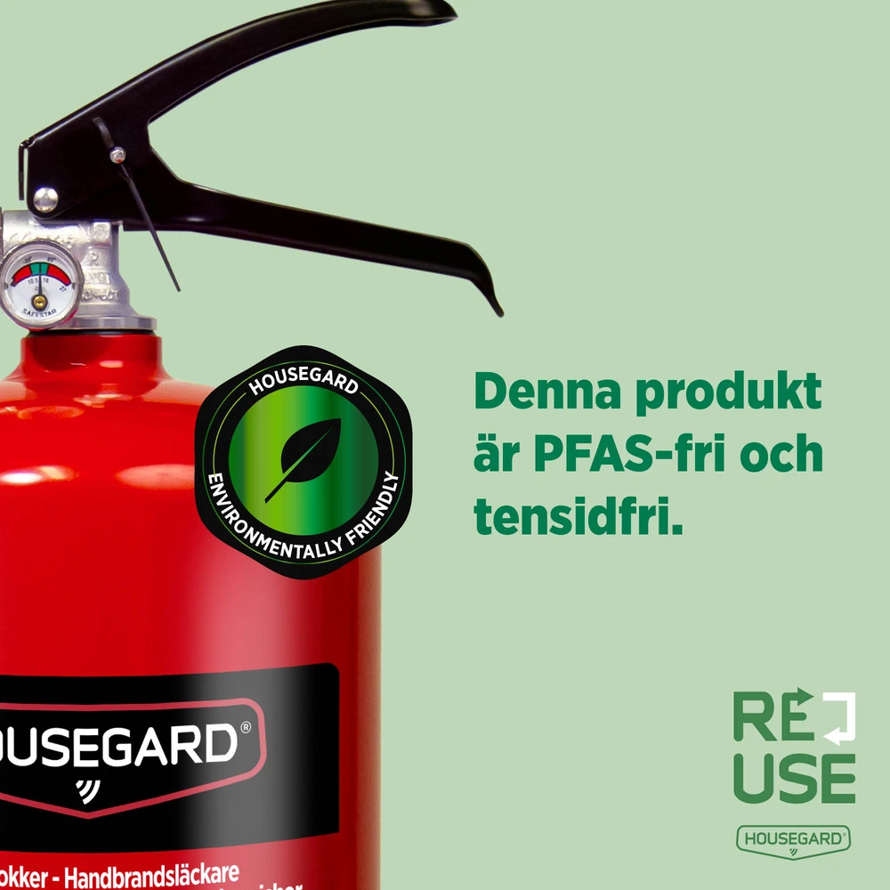 Housegards ReUse är vårt hållbara alternativ till nyproduktion – för dig som vill ha en testad och godkänd brandsläckare med lägre miljöpåverkan.