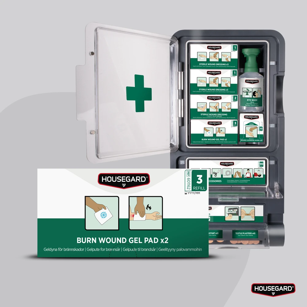 Gelkompresserna är kompatibla med Housegards första hjälpen-stationer och de flesta andra stationer på marknaden.