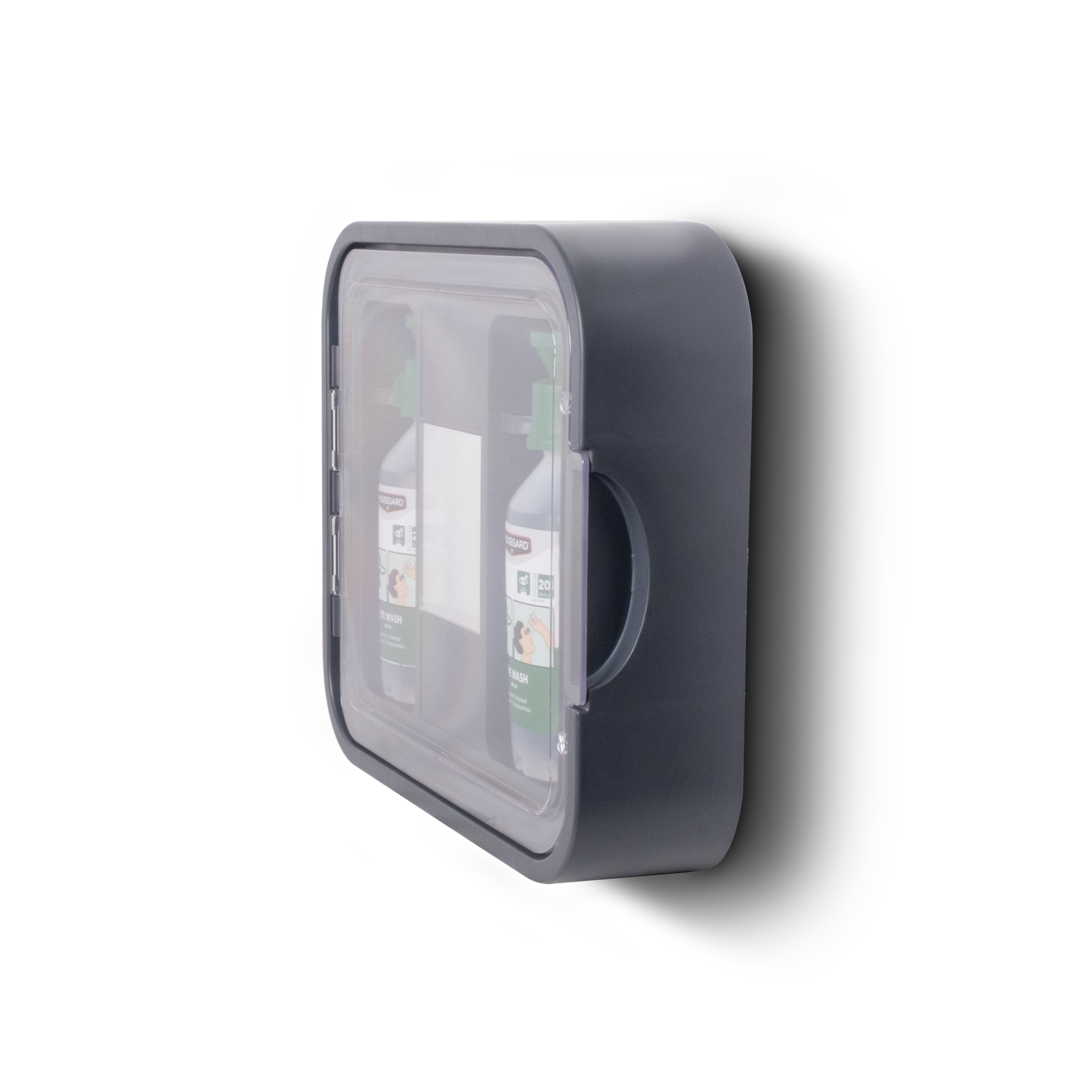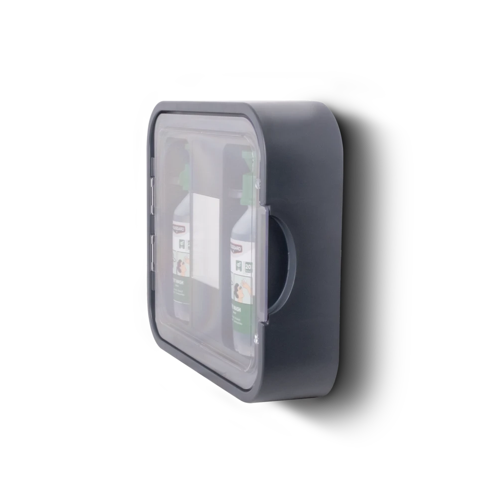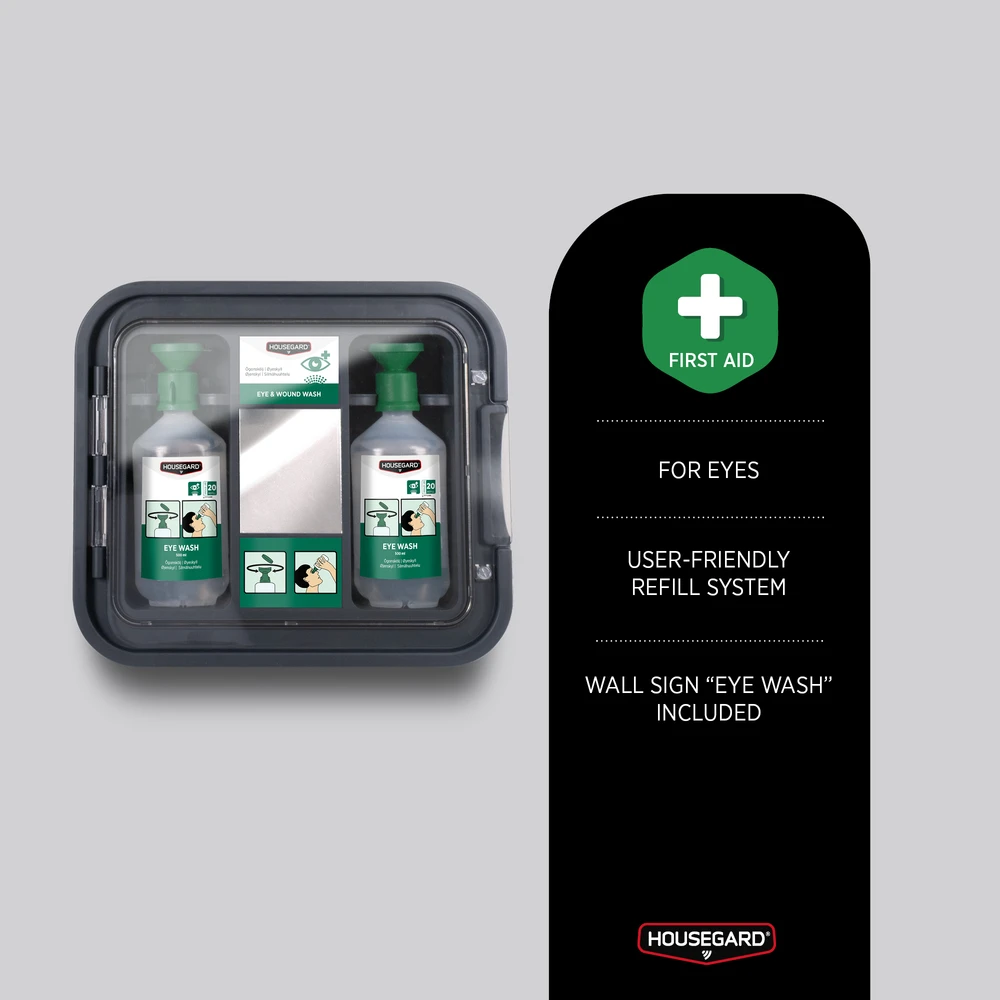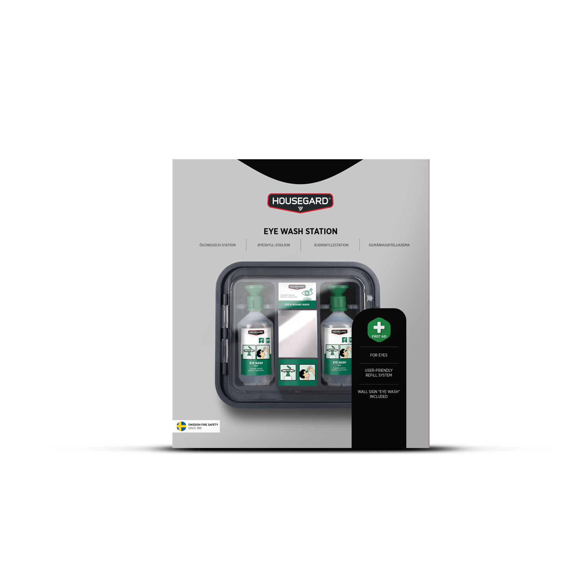 Ett lättplacerat ögonsköljskåp som gör det möjligt att skölja ögonen direkt om damm eller smuts råkar hamna i dem. Skåpet har transparent lucka så att flaskorna alltid syns och är enkla att nå, samt spegel som hjälper dig att rikta sköljningen rätt. Det innehåller två flaskor med steril 0,9 % NaCl-lösning och levereras med skylt för tydlig placering. En trygg lösning att ha i hobbyrum, verkstad, garage eller föreningslokal där partiklar kan förekomma och en snabb åtgärd behövs.
