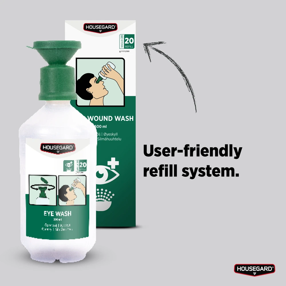 Om det skett en incident kan det vara bra att ha extra ögonskölj tillgängligt i närheten, så att du kan fortsätta skölja utan avbrott. Om du behöver uppsöka vård kan flaskan tas med så att sköljningen kan fortsätta under tiden.
