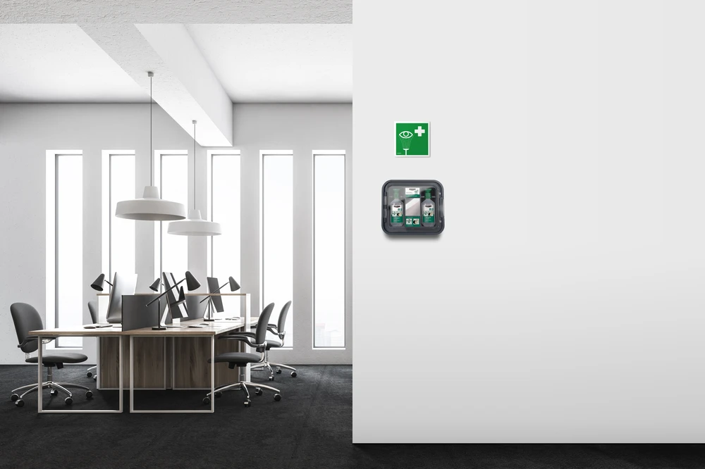 Ögonsköljstationen är framtagen för att ge snabb och enkel hjälp när damm, smuts eller små partiklar orsakar irritation eller skada. Den passar bra i mindre verkstäder, föreningsutrymmen, garage, hobbyrum och hemmamiljöer där du vill kunna skölja ögat direkt.