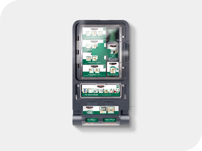 Skåpen finns i flera modeller och är utrustade med noga utvalda produkter för att hantera vanliga skador både i hemmet och på arbetsplatsen. När något använts fyller du enkelt på med våra refillkit – en smidig lösning som håller skåpet redo.