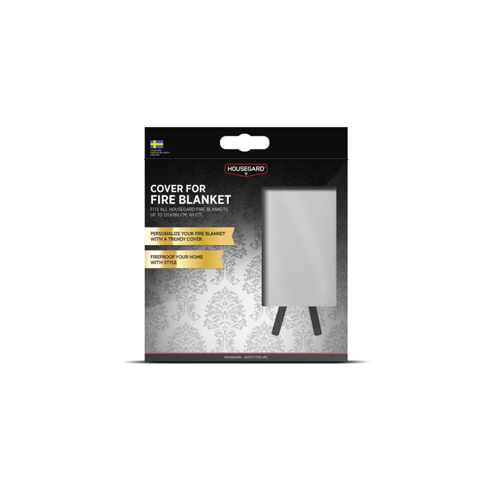 Vill du att brandskyddet ska smälta in i inredningen? Det här vita överdraget ersätter brandfiltens originalfodral och passar alla Housegards brandfiltar i storlek 120x120 cm och 120x180 cm. Med en ren och tidlös design blir det en fin detalj i köket, vardagsrummet eller fritidshuset.
