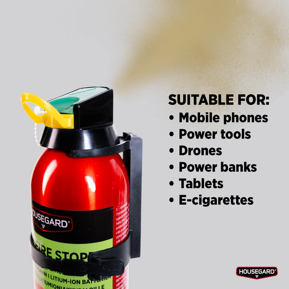 Lith-EX on kehitetty litiumioniakkujen aiheuttamille paloille kodeissa, joissa elektronisia laitteita ladataan. Se sijoitetaan latauspaikkojen läheisyyteen, jotta se on helposti saatavilla alkavan palon varalta. Seinäteline sisältyy.
