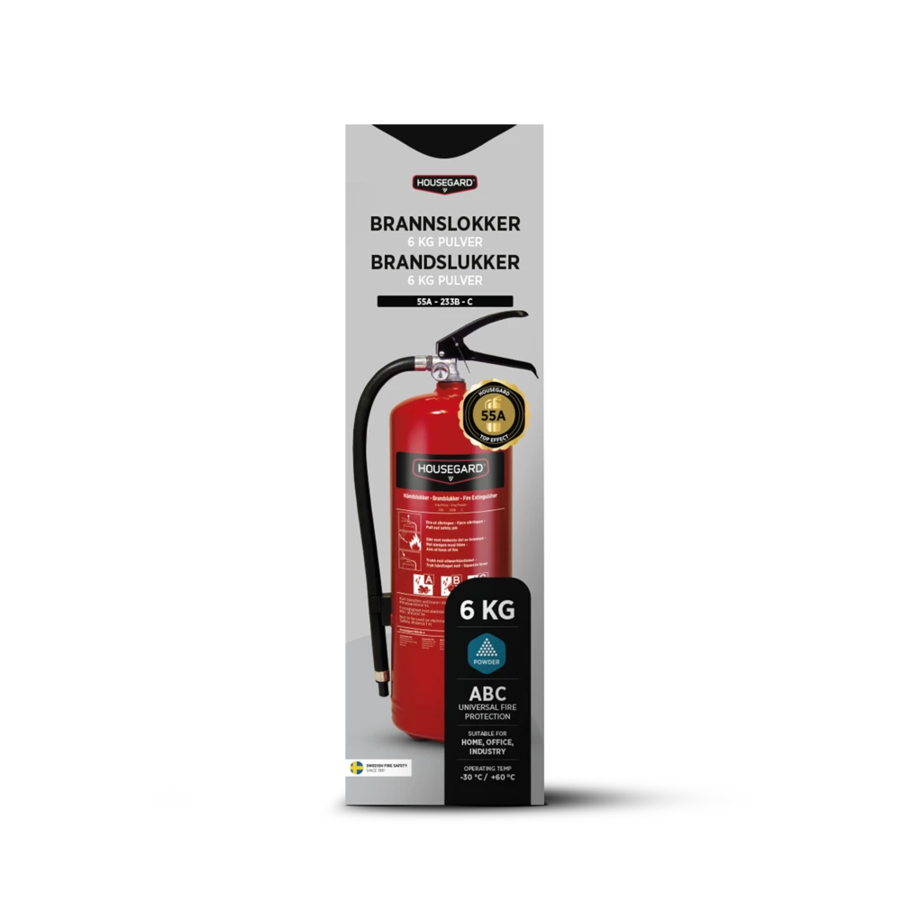 6 kg:n jauhesammutin, jossa on korkea sammutusteho kotiin ja vapaa-ajan asuntoon. ABC-jauheen ansiosta se soveltuu yleisimpiin palotyyppeihin ja on yleisin sammuttintyyppi kotikäytössä. Sammutin on valittu parhaaksi testissä riippumattomissa testeissä ja tarjoaa luotettavaa paloturvaa silloin, kun sitä tarvitaan. Mukana seinäkiinnike.