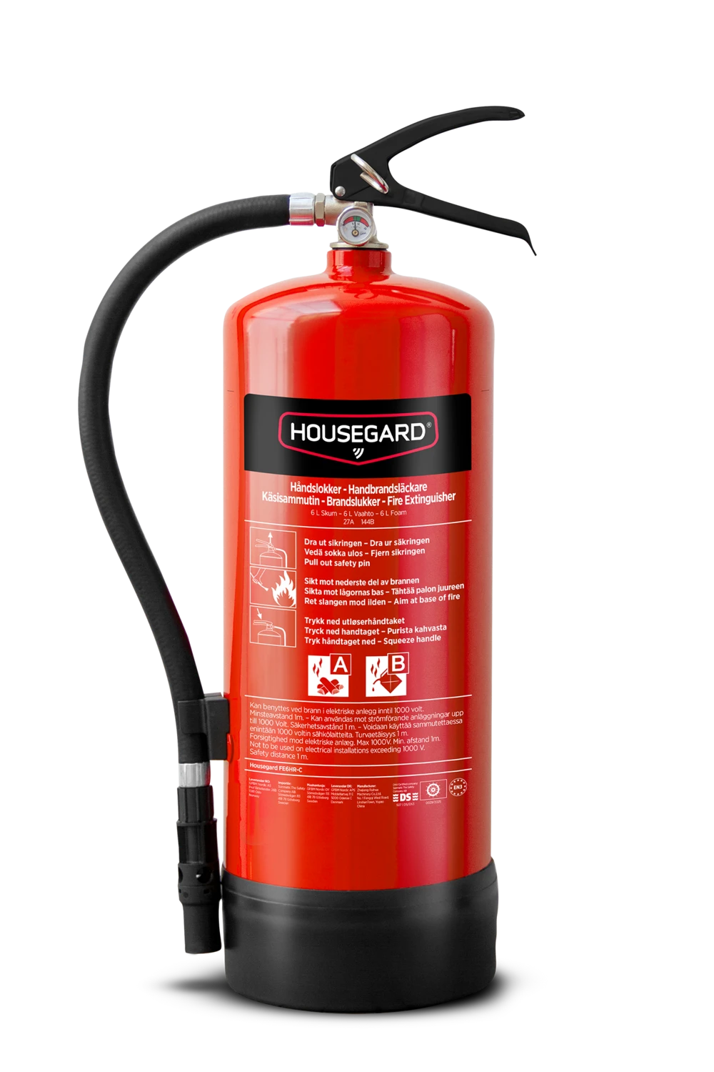 Tehokas skumitulistin – täysin ilman PFAS-yhdisteitäHousegardin 6 L skumitulistin valmistetaan korkealaatuisesti ja on suunniteltu sammuttamaan tehokkaasti neste- ja orgaanisia paloja (luokat A ja B). Soveltuu erinomaisesti teollisuuteen, korjaamoihin, laivoihin ja konetiloihin.