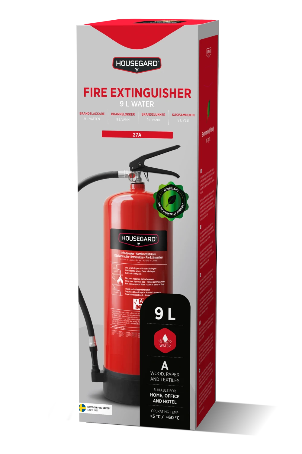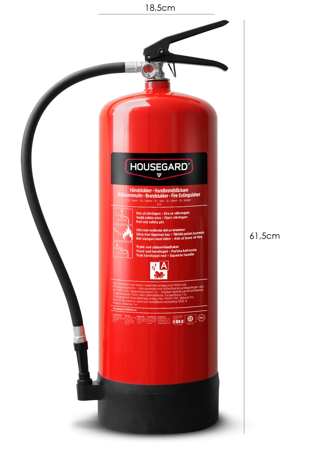 Housegard vesisammutin 9 L on tehokas, puhdas ja ympäristöystävällinen sammutinratkaisu. Se on paras valinta kohteisiin, joissa ympäristöystävällisyys ja siisti sammutus ovat erityisen tärkeitä.