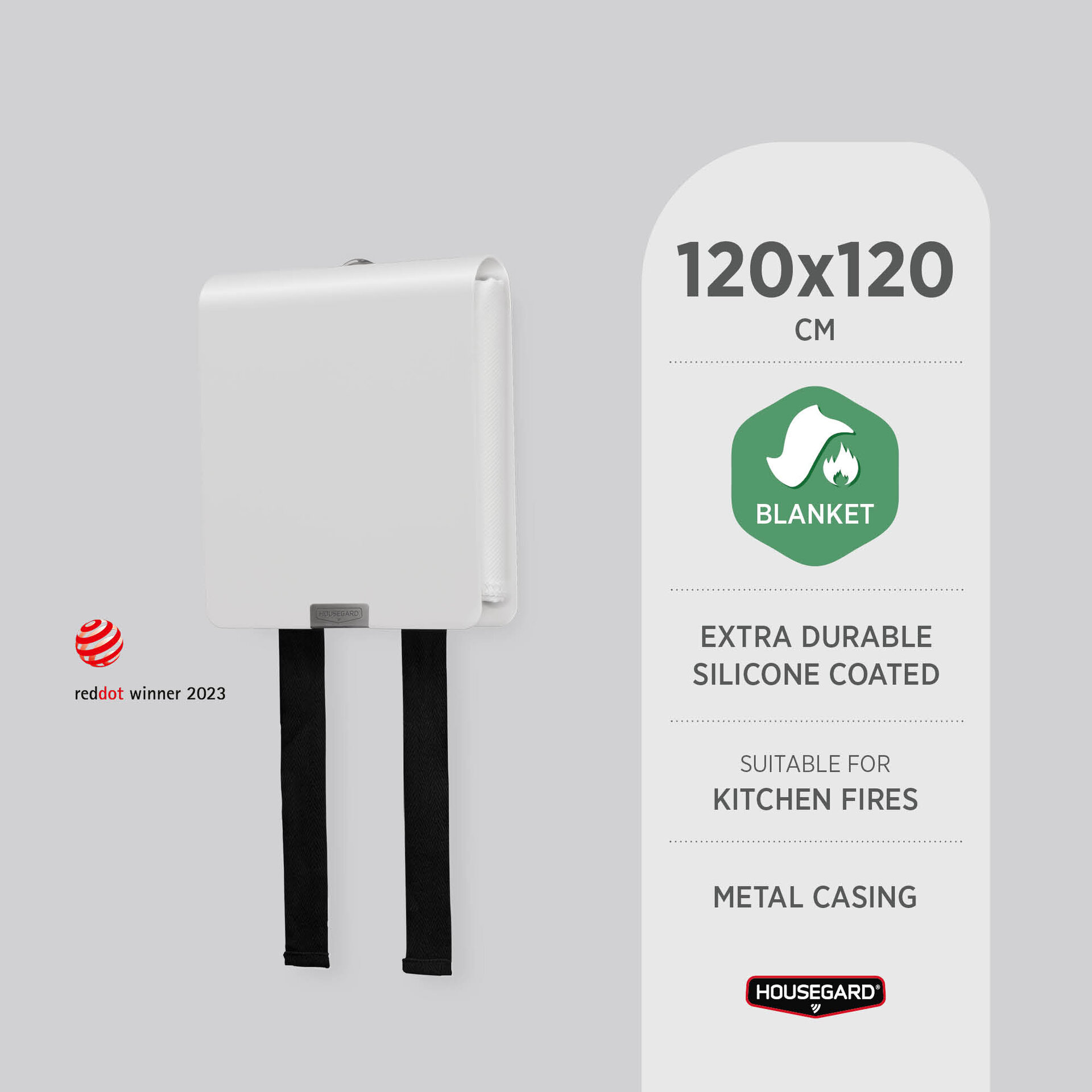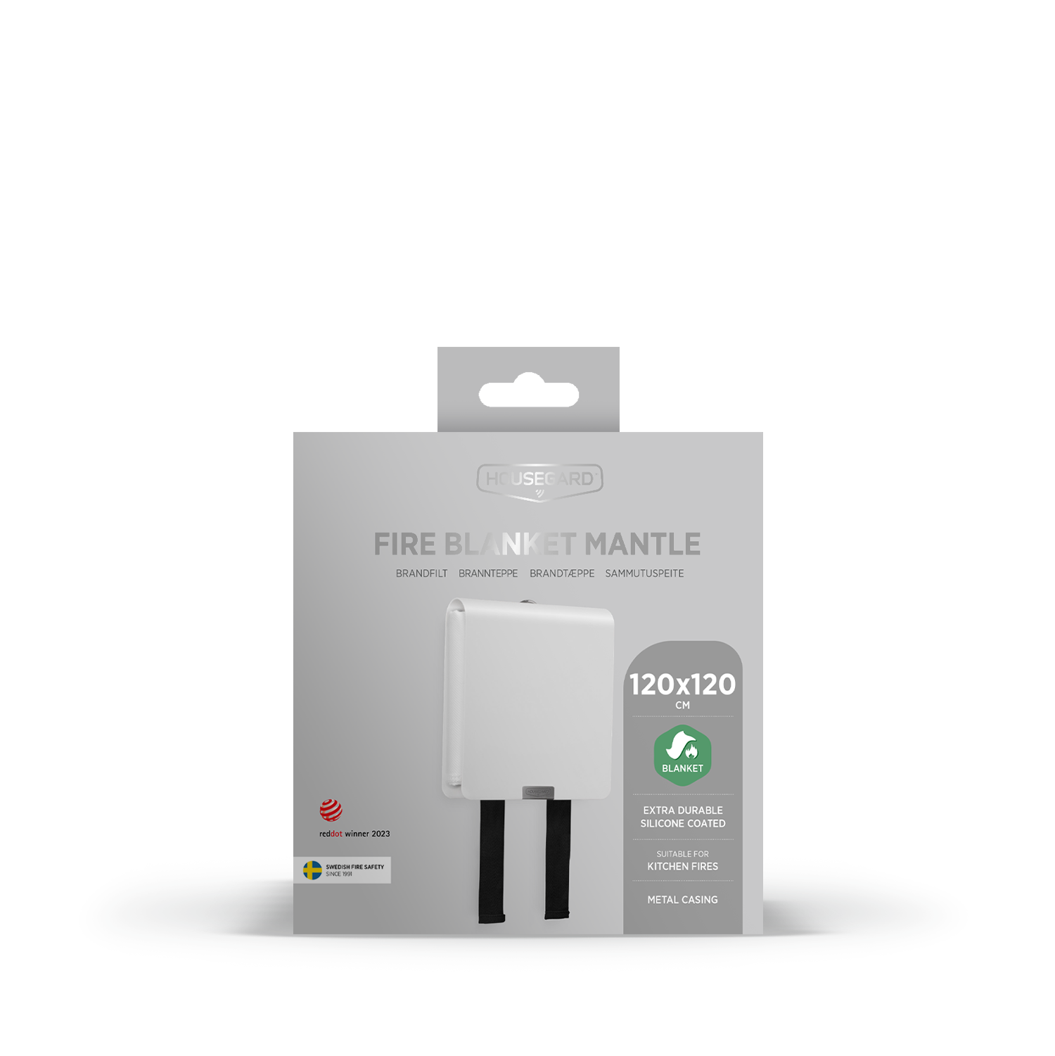 Eksklusiivinen palosammute tyylikkäällä metallikoteloilla. Red Dot Award -voittaja. Silikonipinnoite, kestää jopa 500 °C. Helppo asentaa ja käyttää.