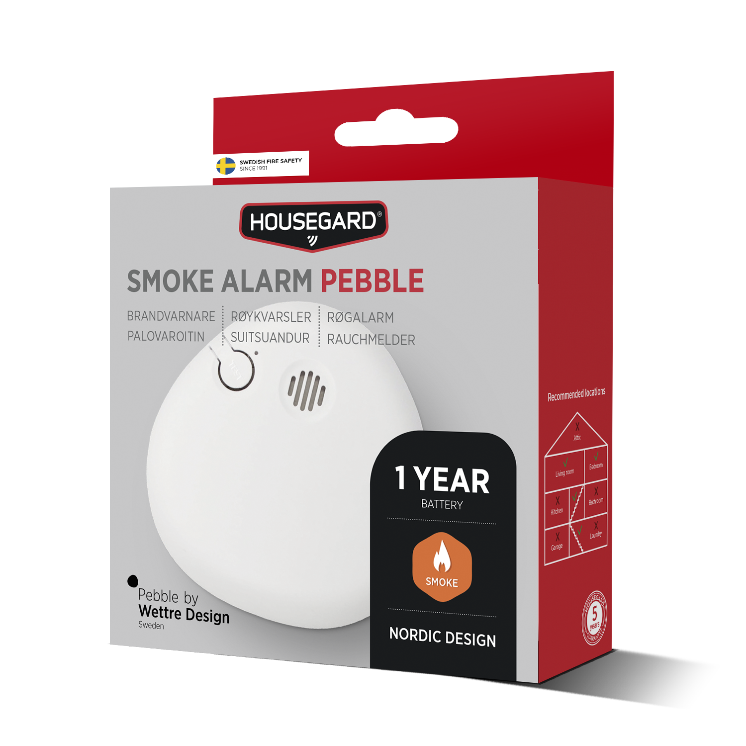 Pebble on tyylikäs palovaroitin, jonka on suunnitellut Lars Wettre luonnon pehmeistä muodoista inspiroituneena. Se sulautuu kotiin huomaamattomasti ja reagoi nopeasti savuun varoittaen selkeällä hälytyksellä silloin, kun sillä on eniten merkitystä.
