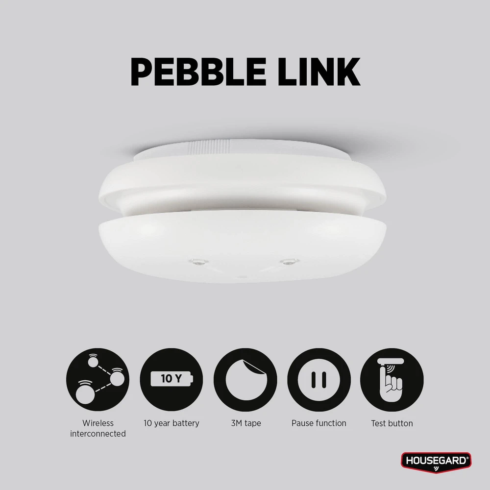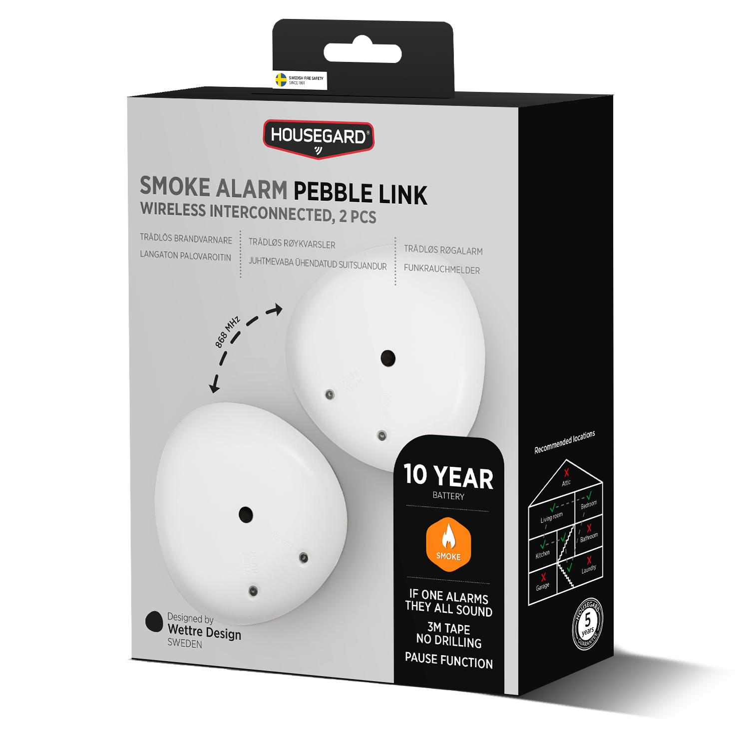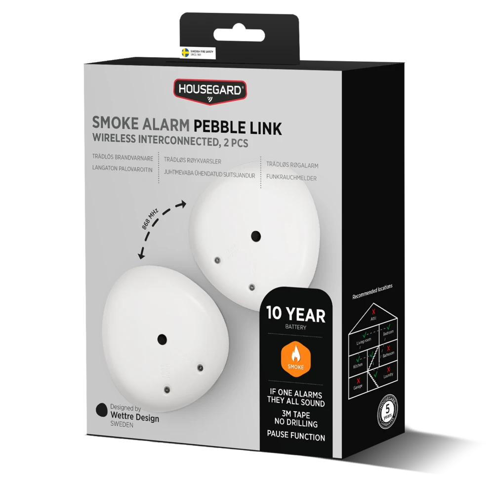 Pebble Link 2 kpl – Sarjaan kytkettävät palovaroittimet 10 vuoden paristollaPebble Link on yksi edistyksellisimmistä palovaroittimistamme – ja tässä saat sen 2 kappaleen pakkauksessa, jotta voit suojata useita huoneita kerralla. Koska varoittimet yhdistyvät langattomasti, saat hälytyksen missä tahansa kotona – kun yksi hälyttää, hälyttävät kaikki.