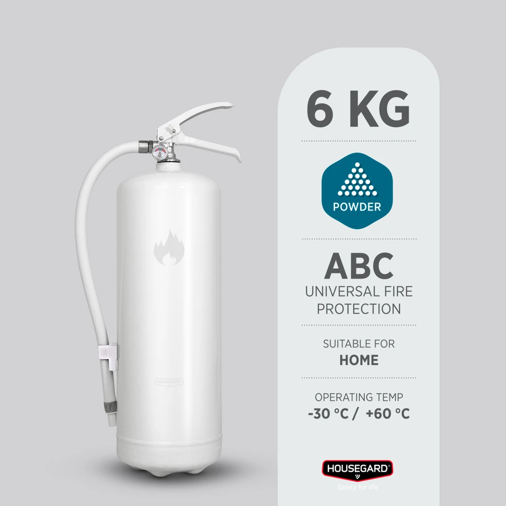 6 kg pulversläckare är förstahandsvalet i alla bostäder men rekommenderas även för placering i kontorsmiljöer, byggarbetsplatser och industrifordon.