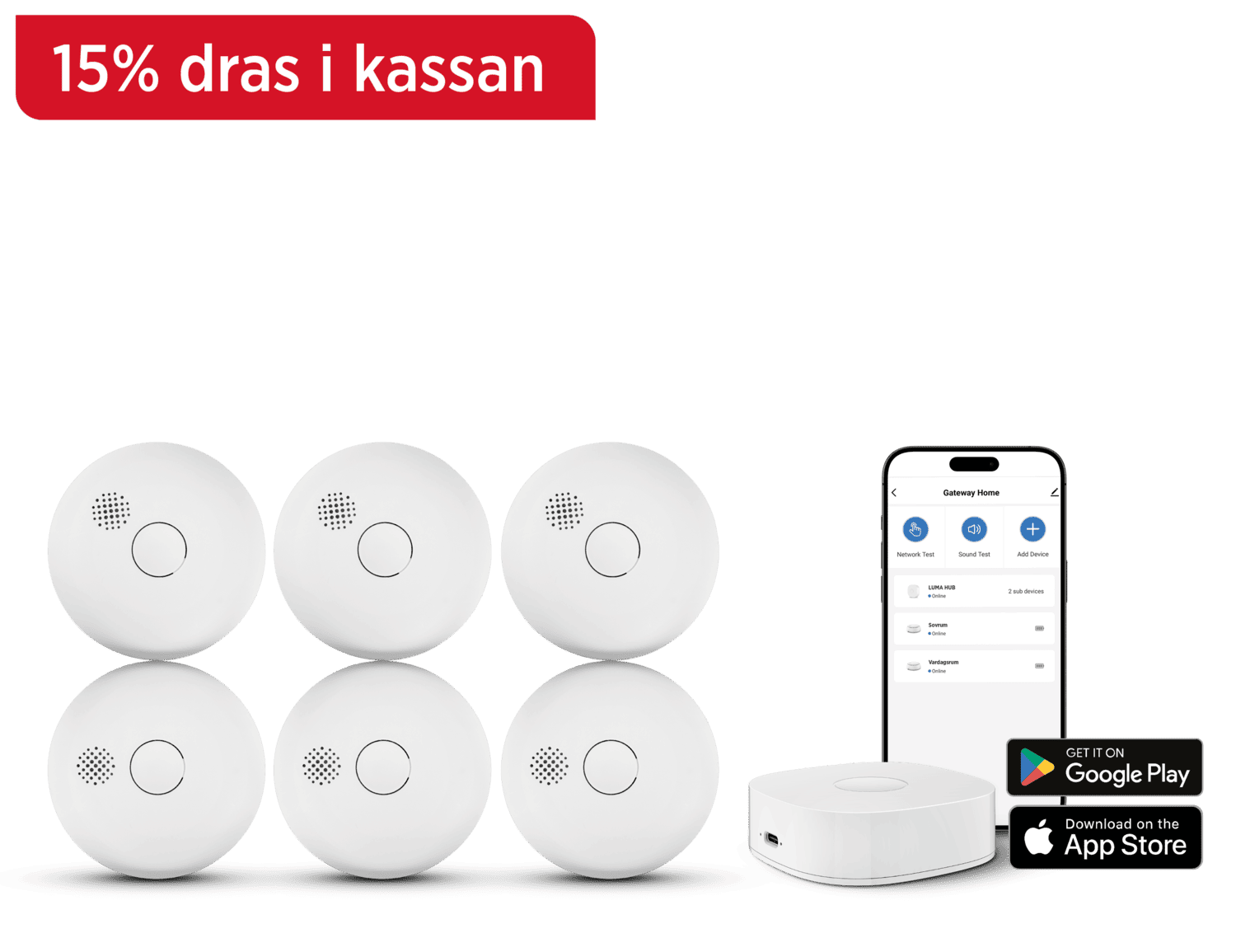 LUMA Smart Brandpaket Large – 6 varnare + Hub