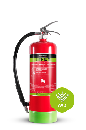 AVD-släckare är särskilt utvecklade för att släcka bränder i litiumjonbatterier – en brandtyp som kräver ett specialanpassat släckmedel. De används ofta i offentliga miljöer som sjukhus, skolor, bilhallar, återvinningsstationer och lagerlokaler.