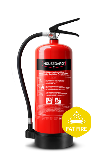 Housegard erbjuder en certifierad och PFAS-fri fettbrandsläckare på 6 liter, utvecklad för både professionella kök och hemmiljöer där risken för fettbrand är hög.