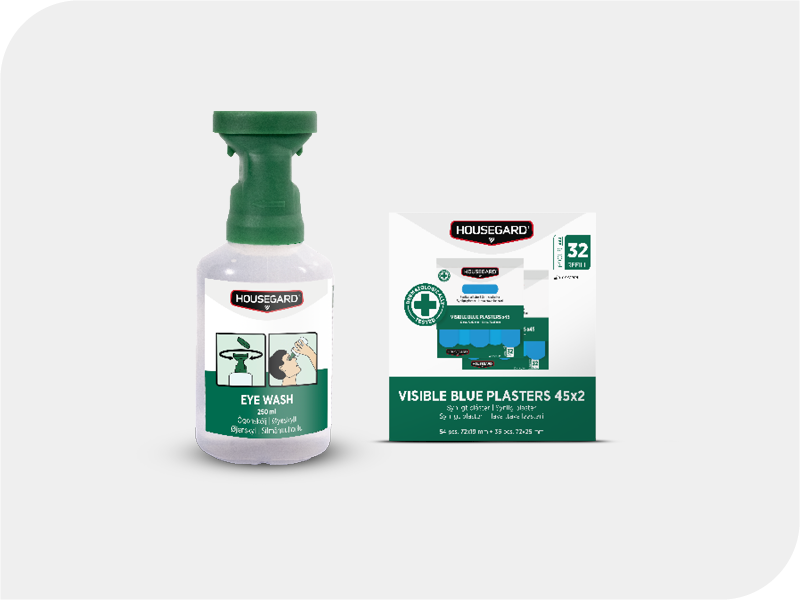 Skåpen finns i flera modeller och är utrustade med noga utvalda produkter för att hantera vanliga skador både i hemmet och på arbetsplatsen. När något använts fyller du enkelt på med våra refillkit – en smidig lösning som håller skåpet redo.