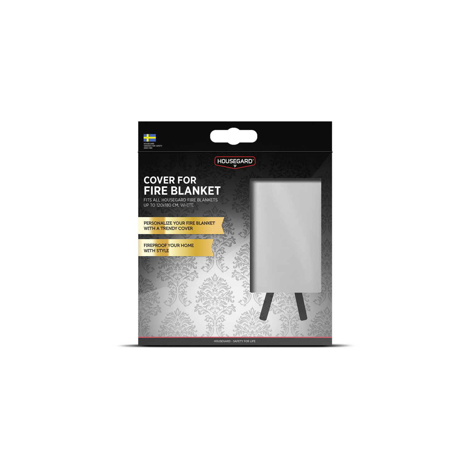 Vill du att brandskyddet ska smälta in i inredningen? Det här vita överdraget ersätter brandfiltens originalfodral och passar alla Housegards brandfiltar i storlek 120x120 cm och 120x180 cm. Med en ren och tidlös design blir det en fin detalj i köket, vardagsrummet eller fritidshuset.